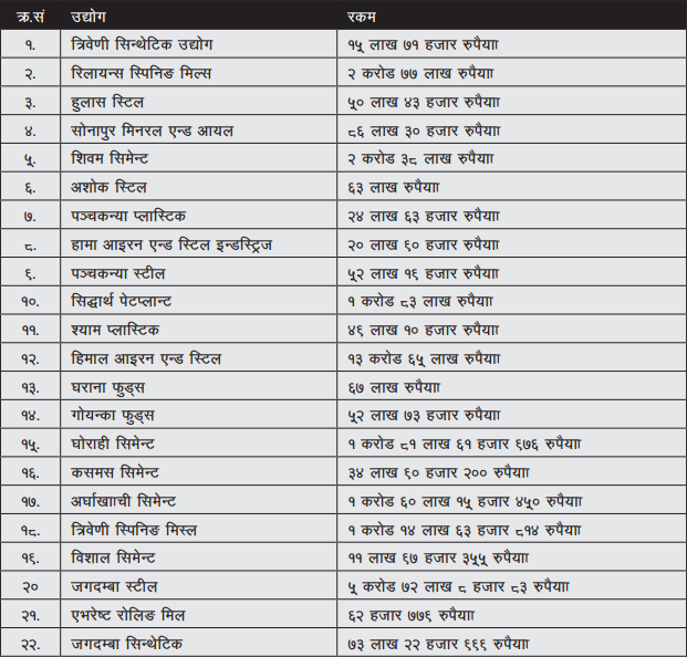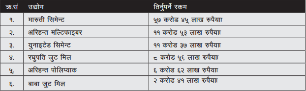 अदालतको अन्तरिम आदेश लिई बक्यौता नतिरेका उद्योग