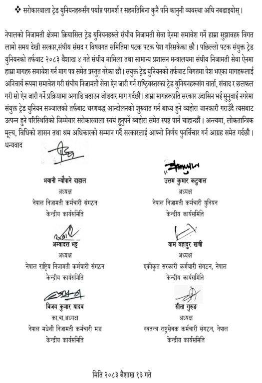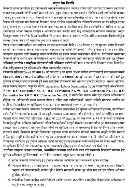 - ट्रेड युनियन अधिकार कटौतीको प्रस्तावविरुद्ध कडा आपत्ति